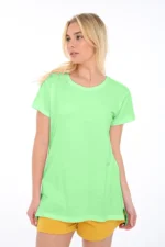 Μπλούζα μακό μονόχρωμη με λαιμόκοψη, γυναικεία από 100% βαμβάκι. Χρώματα: Βεραμάν, Γκρι, Κίτρινο, Ροδί, Τυρκουάζ, Ρουά, Μωβ, Μαύρο, Λευκό, Φούξια