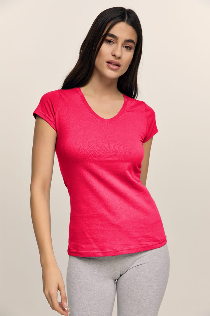 Μπλούζα μακό V μονόχρωμη, γυναικεία από 100% βαμβάκι. Χρώματα: Μαύρο, Τυρκουάζ, Ρουά, Βεραμάν, Ροδι, Φούξια, Γκρι, Λευκό, Λιλά