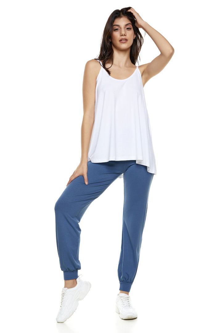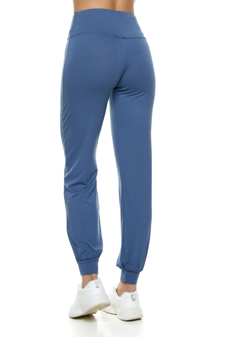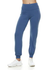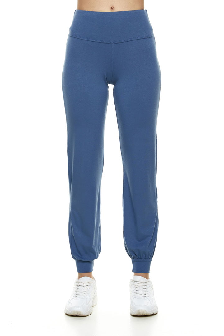Παντελόνα με μανσέτα μονόχρωμη, γυναικεία από 95% βισκόζυ και 5% λύκρα. Body Move. Χρώματα: Μαύρο, Μπλε